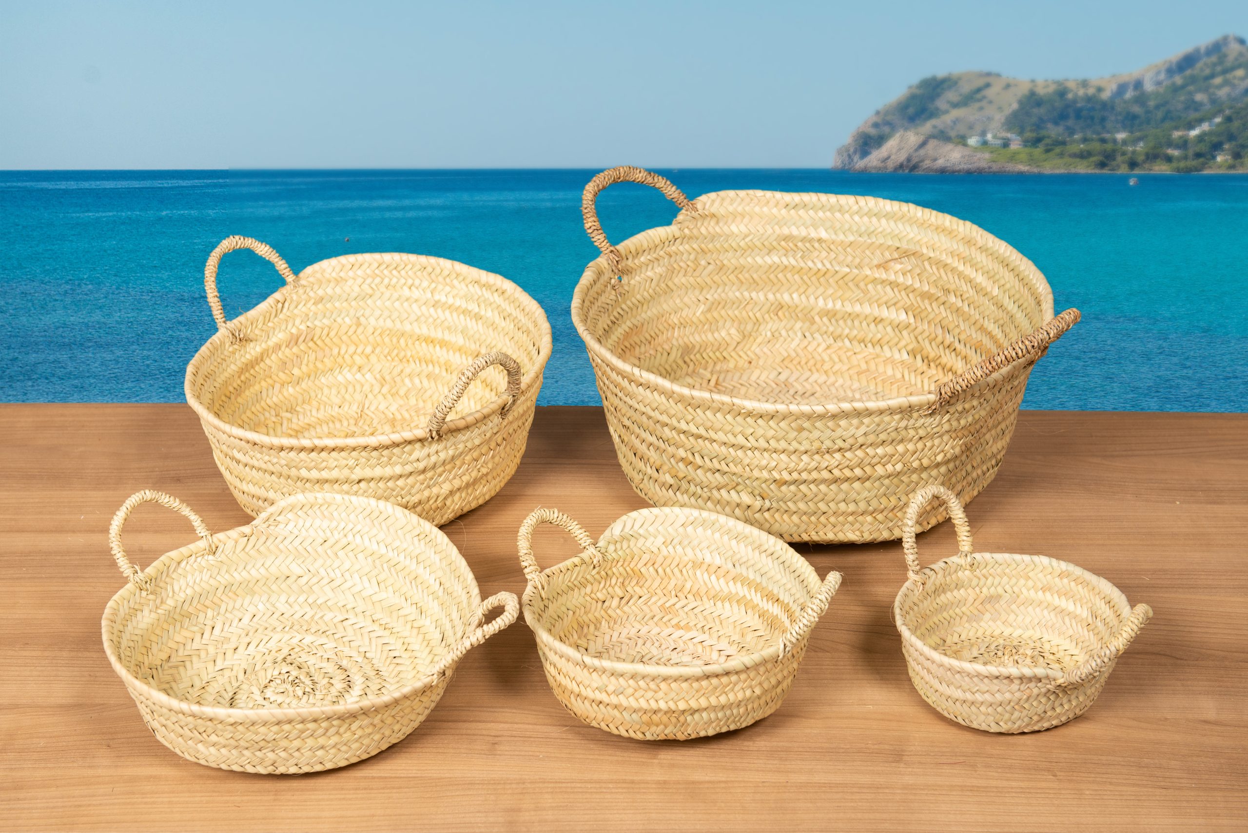 La seva estètica natural recorda els cistells de vímet clàssics, però amb l’encant i la lleugeresa pròpia de la palma.