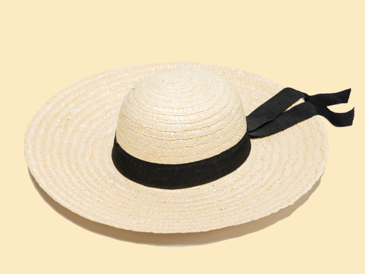 Pamela de paja con cinta negra, y ala de 11cm. Talla 57.