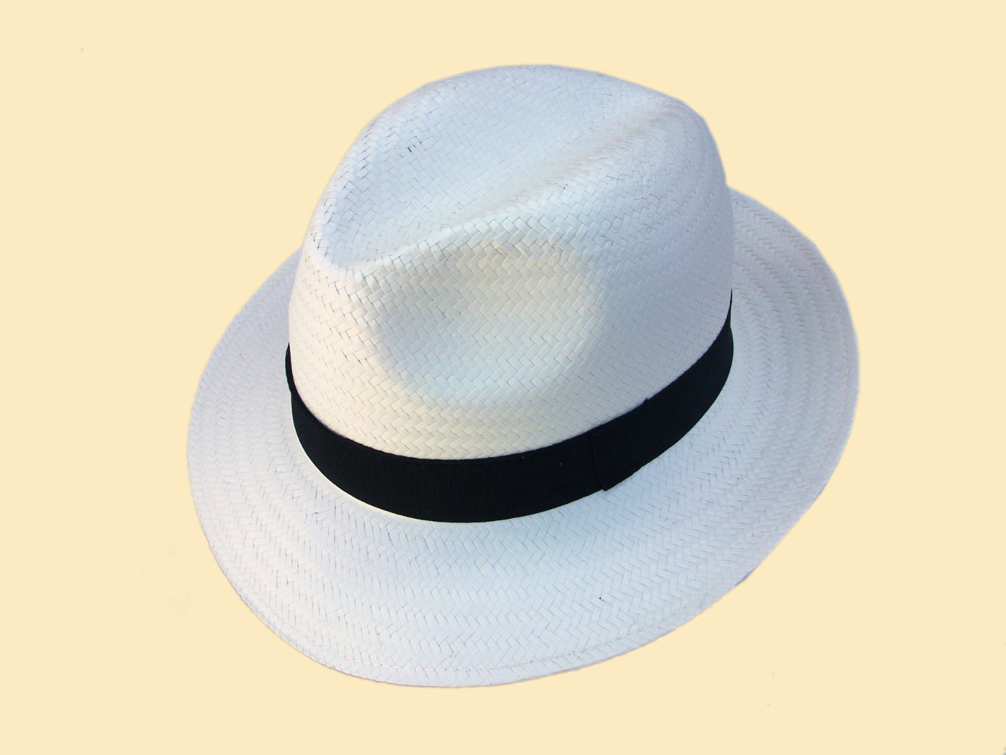 Sombrero estilo panamá con cinta negra y ala de 6 cm. Suave al tacto. Buenos acabados.