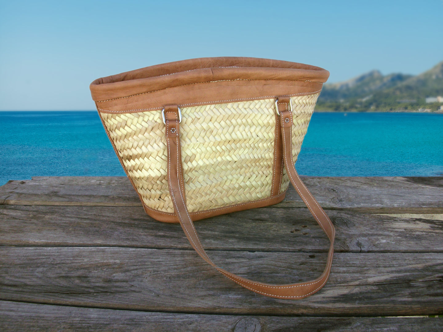 Bolso de palmito con acabados de piel y cierre de cremallera. Dispone de forro y bolsillo interior, y de una base reforzada para asegurar su estabilidad. Costuras de alta calidad.
